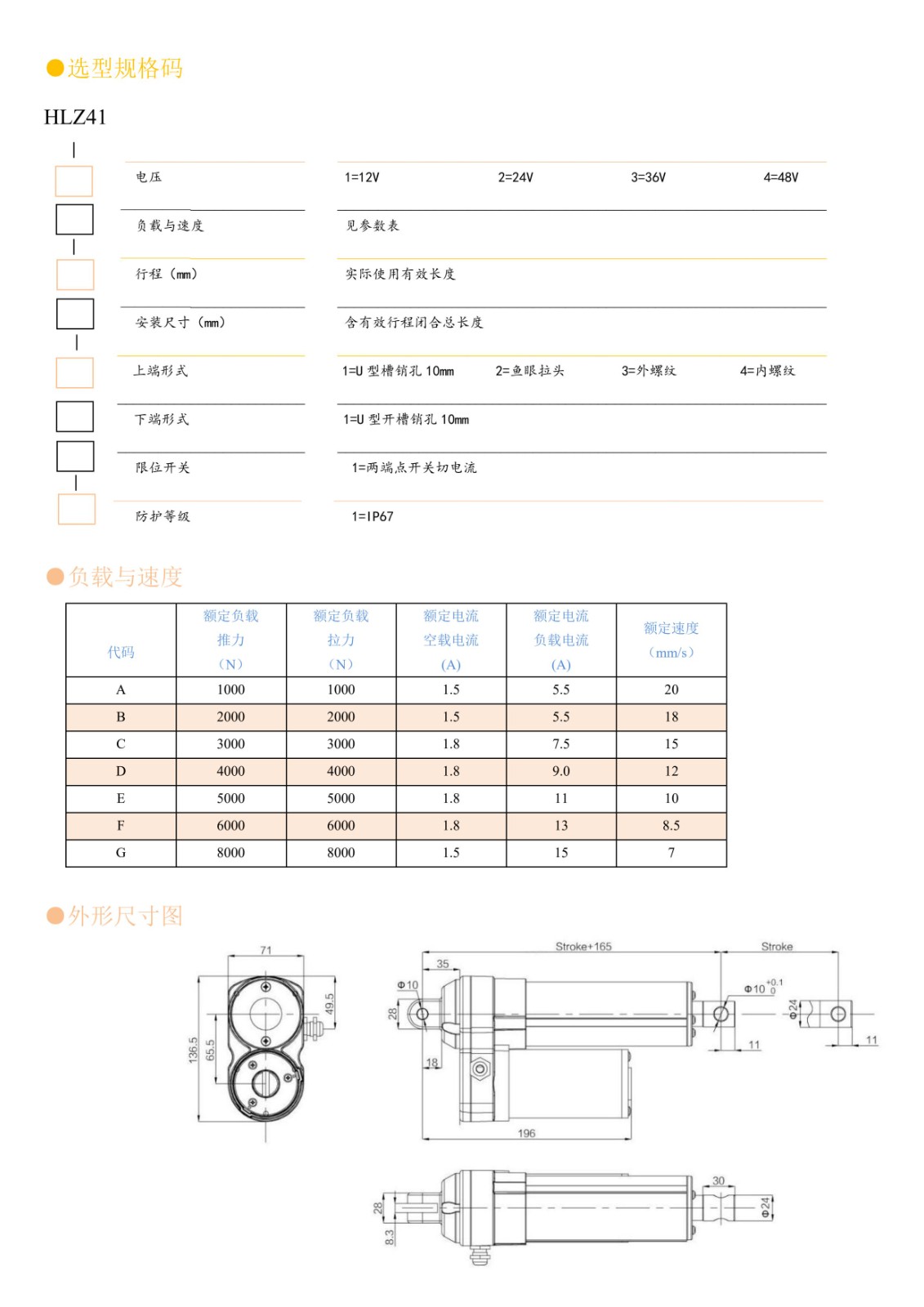 最小安装尺寸: 165+行程