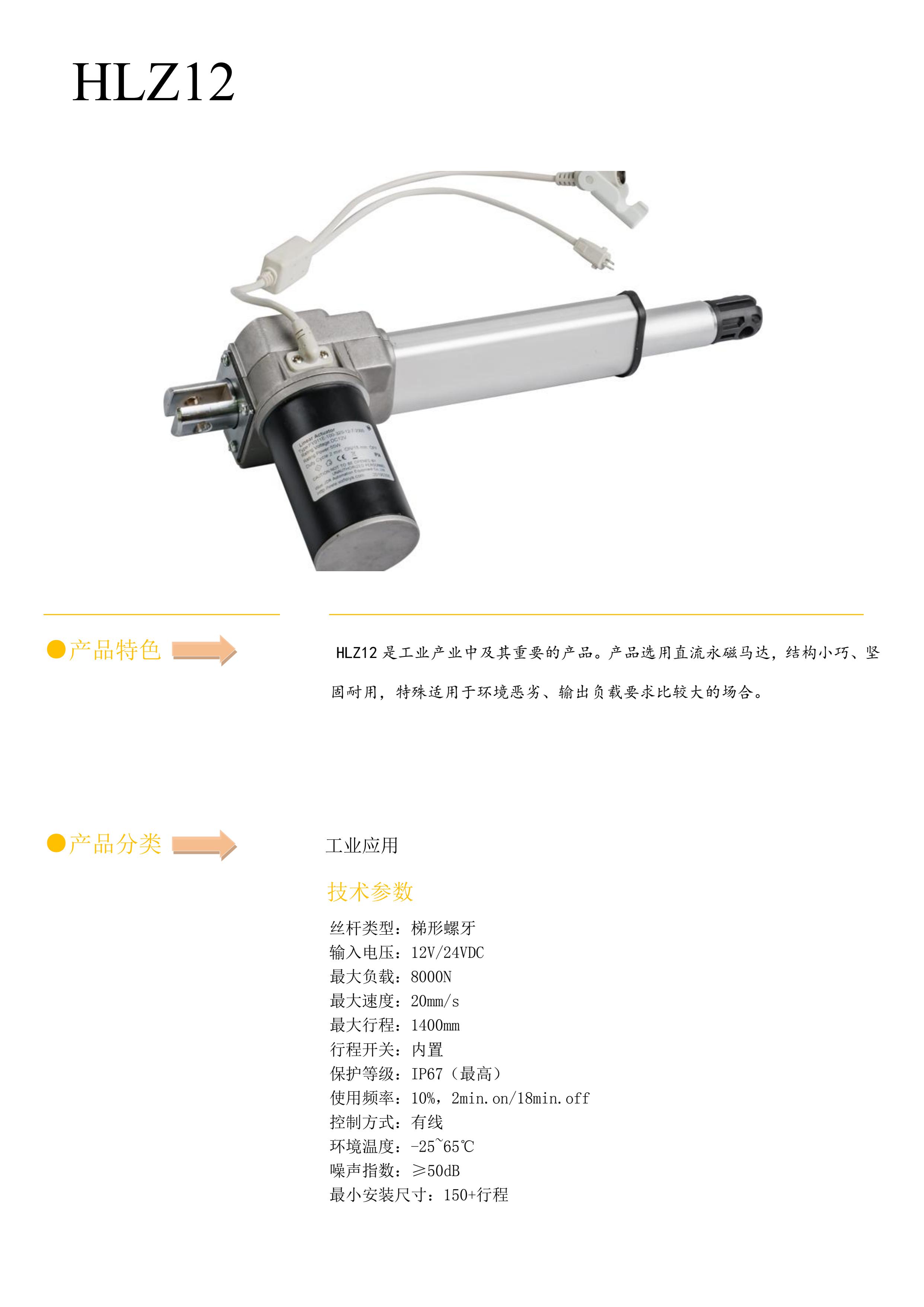 HLZ12是工业产业中及其重要的产品。产品选用直流永磁马达,结构小巧、坚固耐用,特殊适用于环境恶劣、输出负载要求比较大的场合。