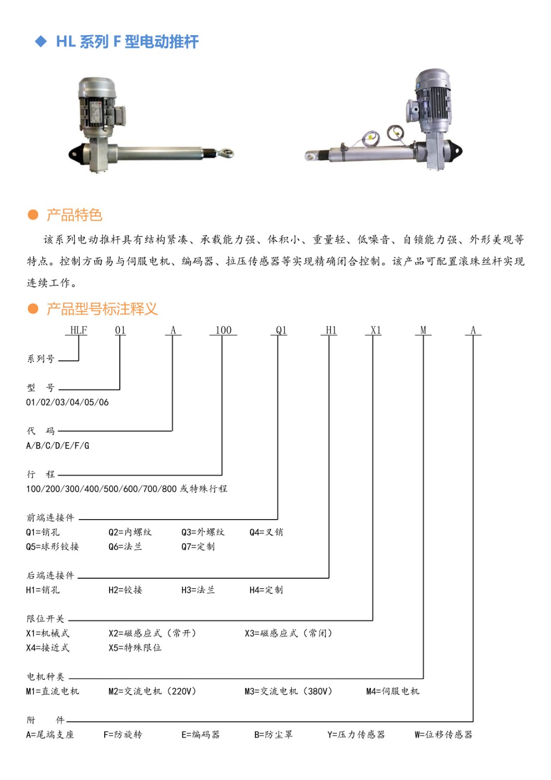该系列电动推杆具有结构紧凑、承载能力强、体积小、重量轻、低噪音、自锁能力强、外形美观等特点。控制方面易与伺服电机、编码器、拉压传感器等实现精确闭合控制。该产品可配置滚珠丝杆实现连续工作。